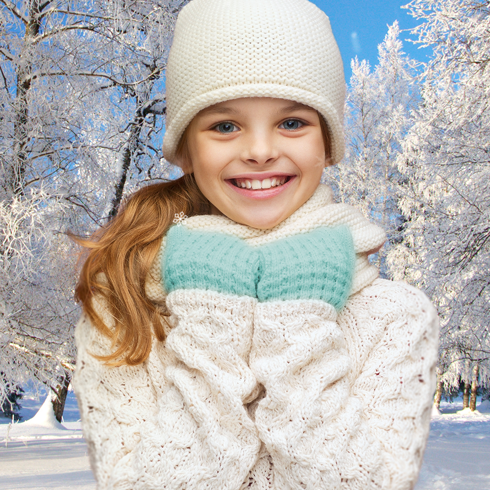 VF-KID-MIT05 | Knitted Mittens for Kids, 4 Assorted Colors - Grey, Black, Turquoise, Pink