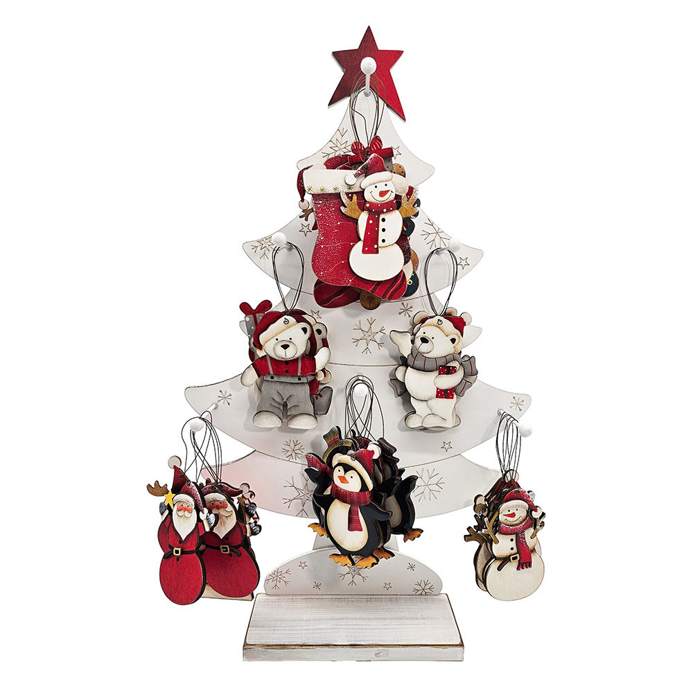 White Wooden Display in the shape of a Christmas Tree - 48-PC Ass’t Ornaments